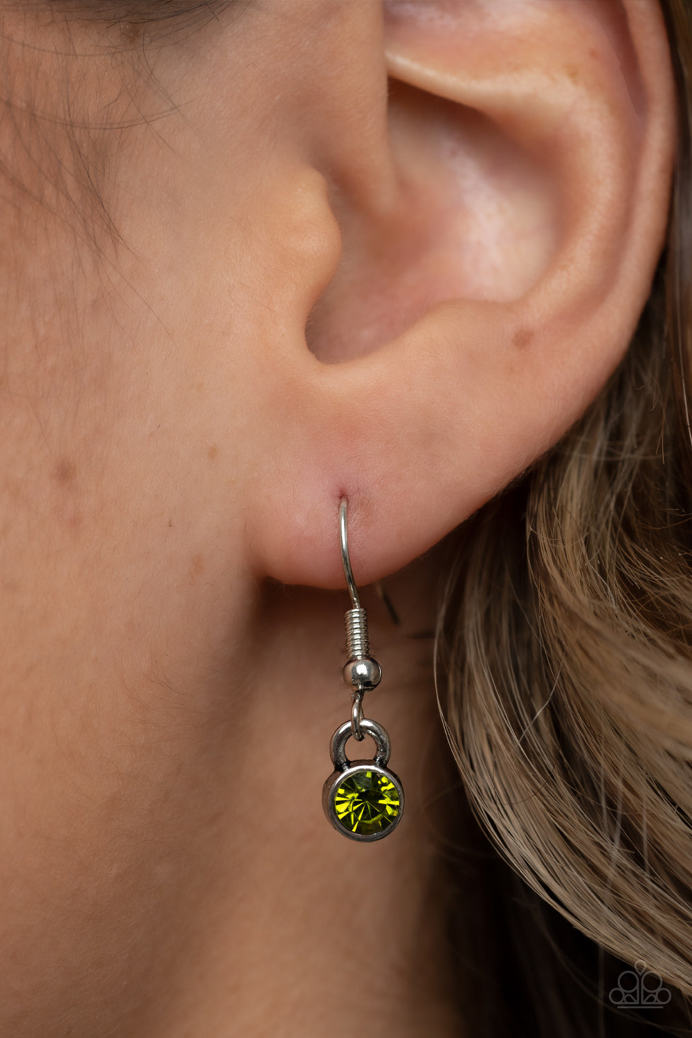 Dainty green rhinestones are sprinkled across the top of a silver tree beautifully branching inside an oval silver frame, resulting in a seasonal pendant at the bottom of an extended silver chain. Features an adjustable clasp closure.
